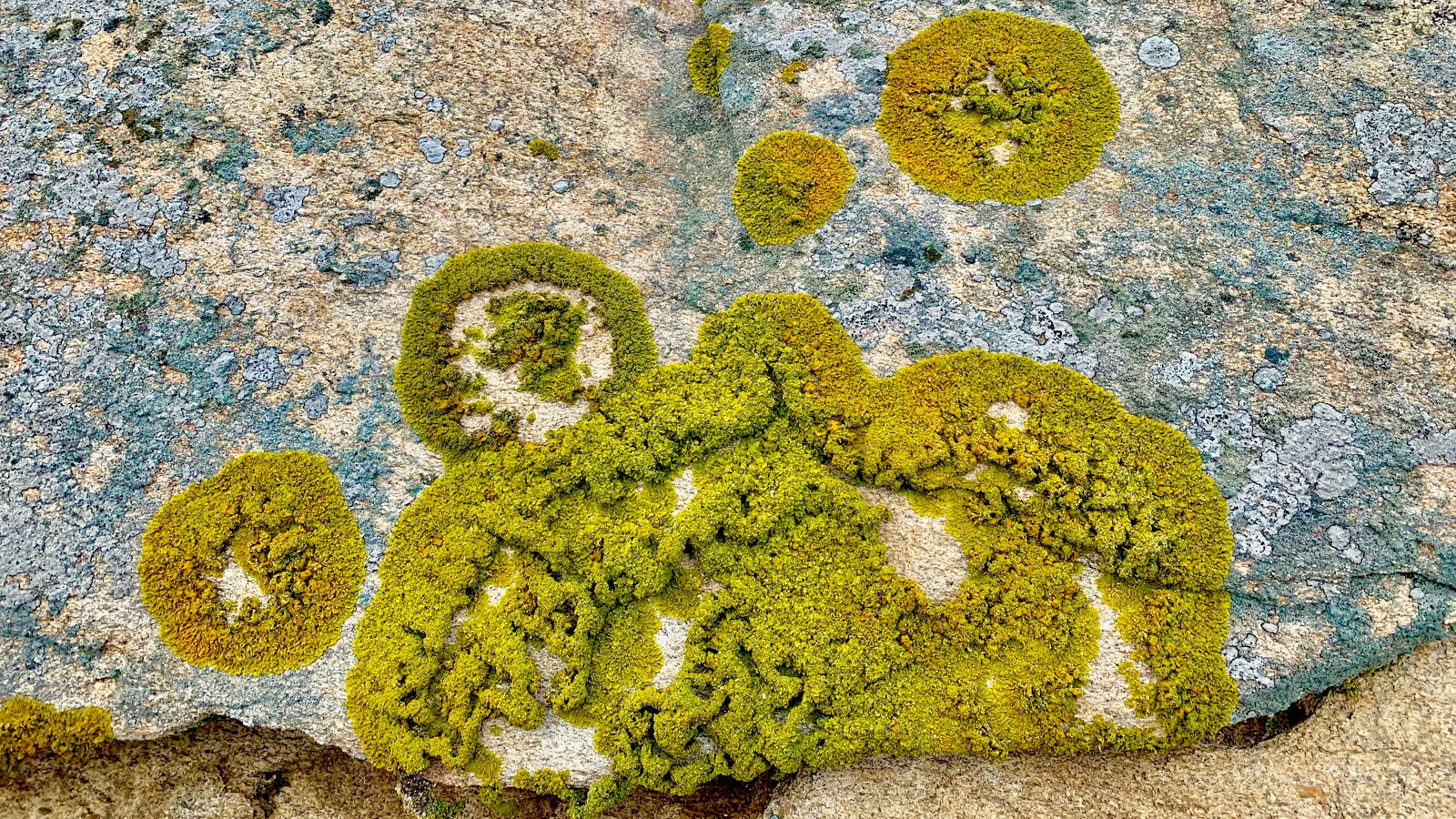 ... das ganze Bild: sind es nicht kreisende Planeten um den Kopf eines Menschen, der wie ein Globus aussieht? Und das von einer Flechte auf einem Stein "gemalt" - Respekt!